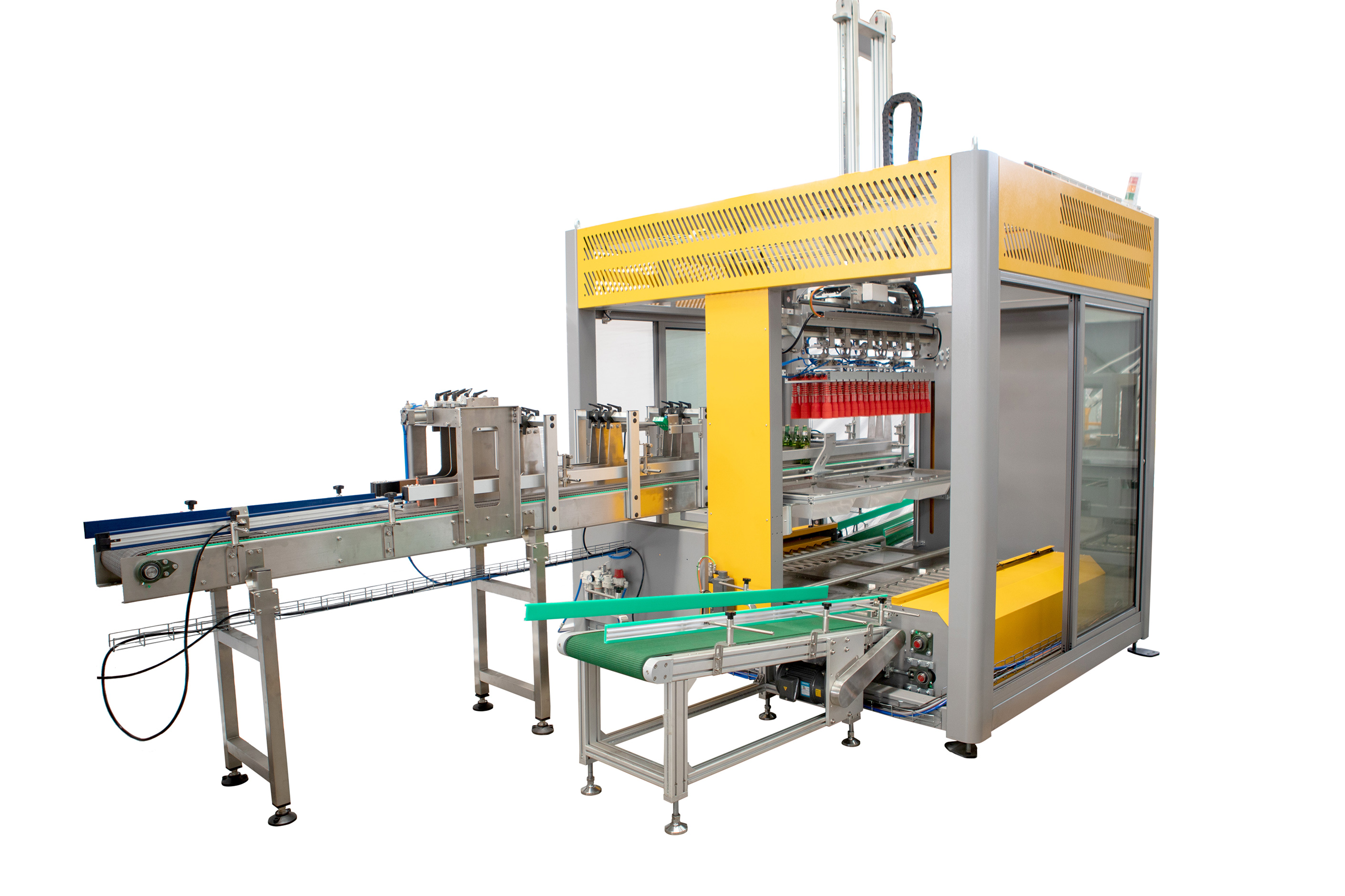 裝箱機(jī)是一種將無(wú)包裝的產(chǎn)品或者小包裝的產(chǎn)品半自動(dòng)或者自動(dòng)裝入運(yùn)輸包裝的一種設(shè)備,其工作原理是將產(chǎn)品按一定排列方式和定量裝入箱中(瓦楞紙箱、塑料箱、托盤(pán)),并把箱的開(kāi)口部分閉合或封牢。