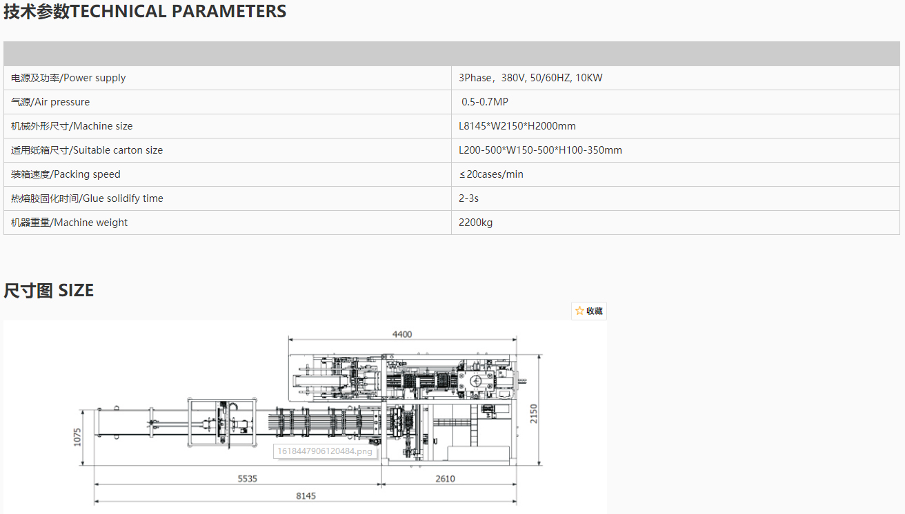 5.常用于飲料、乳品、調(diào)味品、日化用品等生產(chǎn)線的配套設(shè)備,完成生產(chǎn)后道的裝箱工序。